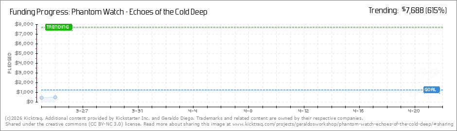 Hi everyone, Thank you. From the bottom of my heart - thank you to the six incredible backers who jumped on board in the first 10 hours of the Phantom Watch: Echoes of the Cold Deep Kickstarter. We’re already at $349 pledged toward our $1,250... (Read More)