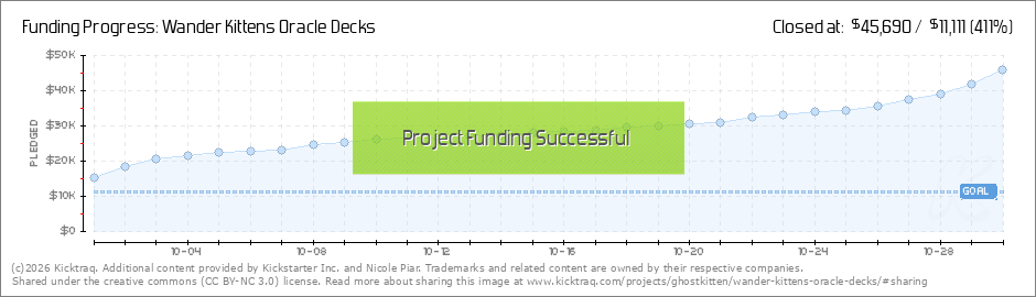 Thank you so much helping the Wander Kittens along their magical journey. You came in strong and swift like a powerful wind at our backs and we are off! We were fully funded in less than 3 hours AND in less than a day, we unlocked our first stretch... (Read More)
