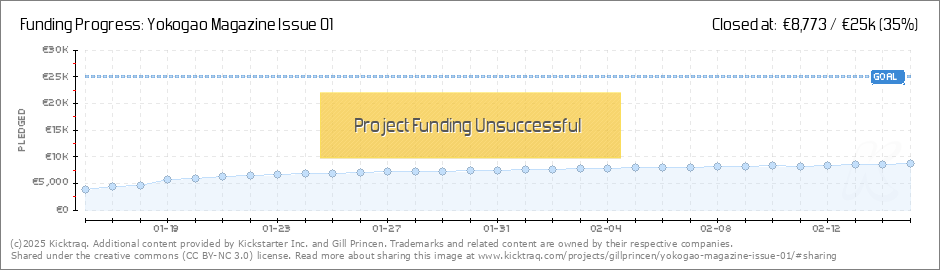 Help your backers reach your daily goals and help others see how you're doing. It's easy, with Kicktraq Mini.Here are a few quick snippits of code you can use to embed your personalized widget on your website, in your blog, and even on your favorite forum.