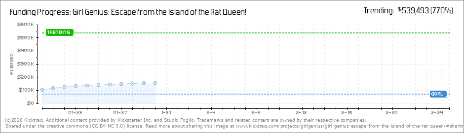 Help your backers reach your daily goals and help others see how you're doing. It's easy, with Kicktraq Mini.Here are a few quick snippits of code you can use to embed your personalized widget on your website, in your blog, and even on your favorite forum.
