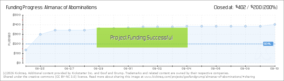 Wonderful backers, We are well into the last 48 hours in our funding run and are already at work creating content for what will become the Almanac of Abominations. There are multiple encounters getting kicked off right now with concepts, stat... (Read More)