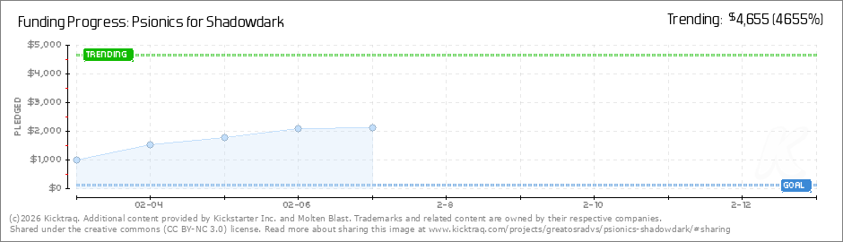 Help your backers reach your daily goals and help others see how you're doing. It's easy, with Kicktraq Mini.Here are a few quick snippits of code you can use to embed your personalized widget on your website, in your blog, and even on your favorite forum.