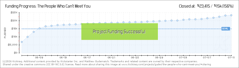 Well, I'm truly grateful. In just over three days we were able to hit our first goal of The People Who Can't Meet You, guaranteeing the funding raised. I will never be able to thank you all enough for your support of this passion project! BUT, we've... (Read More)