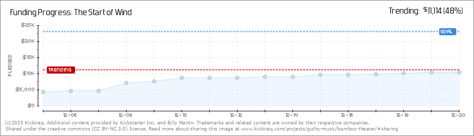 Help your backers reach your daily goals and help others see how you're doing. It's easy, with Kicktraq Mini.Here are a few quick snippits of code you can use to embed your personalized widget on your website, in your blog, and even on your favorite forum.