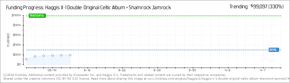 Help your backers reach your daily goals and help others see how you're doing. It's easy, with Kicktraq Mini.Here are a few quick snippits of code you can use to embed your personalized widget on your website, in your blog, and even on your favorite forum.