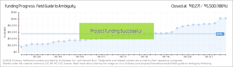 Last night at 8 pm est, we reached the formal kickstarter goal to print the artists book Field Guide to Ambiguity with 80 backers and 215 books reserved!!! This is thrilling, relieving, and very humbling. Your involvement is what makes this... (Read More)
