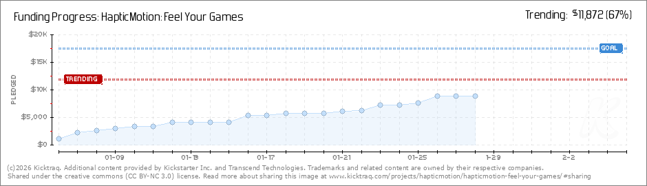 Help your backers reach your daily goals and help others see how you're doing. It's easy, with Kicktraq Mini.Here are a few quick snippits of code you can use to embed your personalized widget on your website, in your blog, and even on your favorite forum.