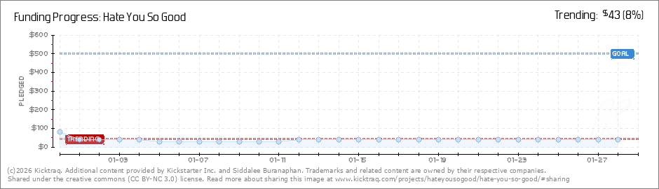 Help your backers reach your daily goals and help others see how you're doing. It's easy, with Kicktraq Mini.Here are a few quick snippits of code you can use to embed your personalized widget on your website, in your blog, and even on your favorite forum.