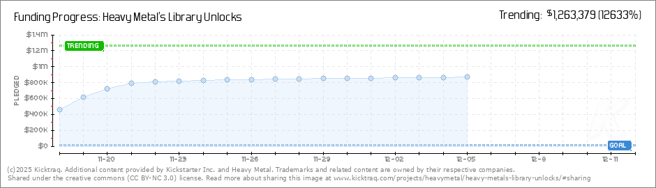 What an unbelievable opening 72 hours! In the first 72 hours over 4,319 backers helped us raise over $774,000 and officially launch the Heavy Metal Library. Your support has made this one of the strongest openings for a graphic storytelling... (Read More)