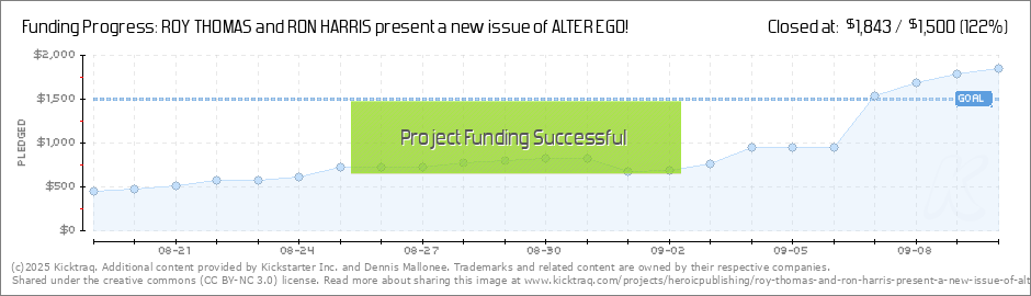 Thanks to the support we got from all out wonderful Kickstarter backers, Alter Ego #6 has reached its funding goal. There's still time to go, and we do want to get as much as we can to Ron. If you haven't already done it, please share the link to... (Read More)