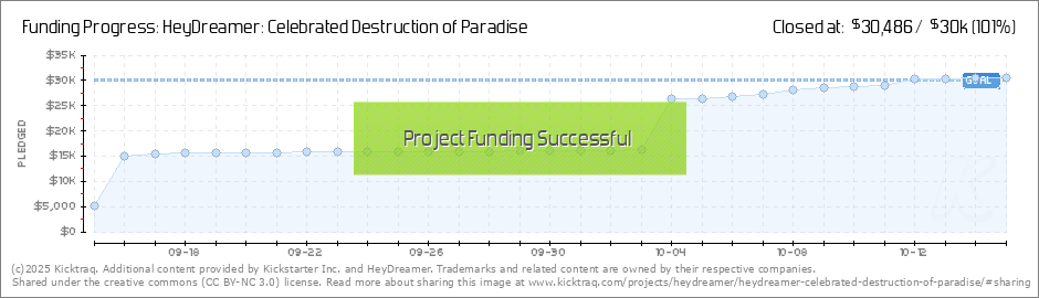 Help your backers reach your daily goals and help others see how you're doing. It's easy, with Kicktraq Mini.Here are a few quick snippits of code you can use to embed your personalized widget on your website, in your blog, and even on your favorite forum.