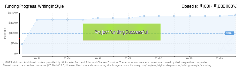 Help your backers reach your daily goals and help others see how you're doing. It's easy, with Kicktraq Mini.Here are a few quick snippits of code you can use to embed your personalized widget on your website, in your blog, and even on your favorite forum.