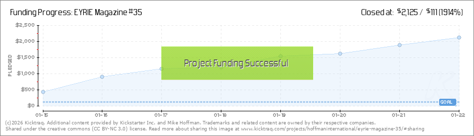 Help your backers reach your daily goals and help others see how you're doing. It's easy, with Kicktraq Mini.Here are a few quick snippits of code you can use to embed your personalized widget on your website, in your blog, and even on your favorite forum.