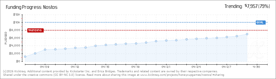 Hi everyone! I've been absolutely floored by the enthusiasm you have expressed in Nostos. Just 10 days since this crowdfunding campaign started, and we are nearly at the halfway point, sitting at 115 backers and just over $4,400 in pledges! We've got... (Read More)