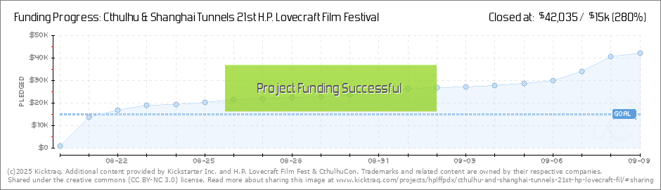 Thanks, everyone for an incredible 2 days! We're funded already and are looking forward to updating you with more info about our rewards and activities. We were just spreading the madness in Providence for the very first HPLFF there and are now... (Read More)