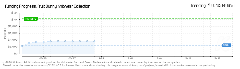 Help your backers reach your daily goals and help others see how you're doing. It's easy, with Kicktraq Mini.Here are a few quick snippits of code you can use to embed your personalized widget on your website, in your blog, and even on your favorite forum.