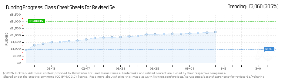 Greetings backers, we have smashed through another stretch goal which means the beginner character sheets, along with the level 1 pregen characters will be added to your bundles! So, what's next? Next Goal: Player Reference Cards - £2,500Keeping... (Read More)