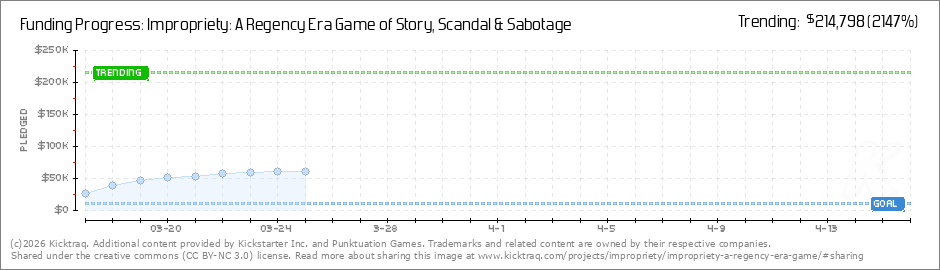 Dearest Gentle Game Enthusiasts,Ah, has it already been one week since we introduced Impropriety to the "ton"? Indeed, and what a marvelous whirlwind it has been! Since we last spoke... ...we are now nearly 600% funded with over 475 backers! ...we... (Read More)
