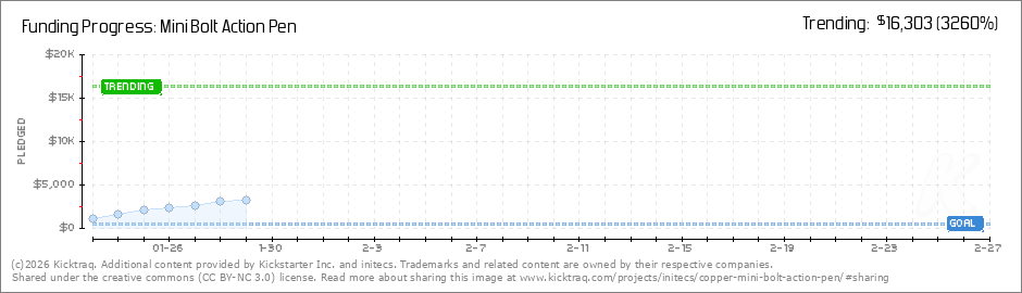 Help your backers reach your daily goals and help others see how you're doing. It's easy, with Kicktraq Mini.Here are a few quick snippits of code you can use to embed your personalized widget on your website, in your blog, and even on your favorite forum.