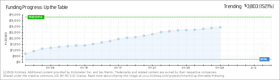 Hi all, This will be a brief update. There is now a game overview/preview video for Up the Table available courtesy of the One Last Hand channel, and I've added it to the campaign page. For those of you curious to see some of the mechanics in action,... (Read More)