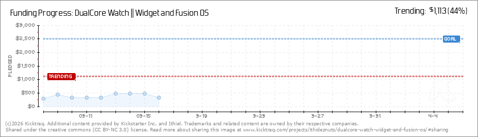 Help your backers reach your daily goals and help others see how you're doing. It's easy, with Kicktraq Mini.Here are a few quick snippits of code you can use to embed your personalized widget on your website, in your blog, and even on your favorite forum.