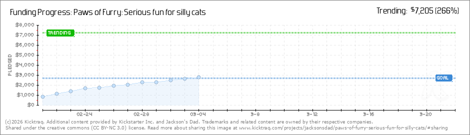 Help your backers reach your daily goals and help others see how you're doing. It's easy, with Kicktraq Mini.Here are a few quick snippits of code you can use to embed your personalized widget on your website, in your blog, and even on your favorite forum.