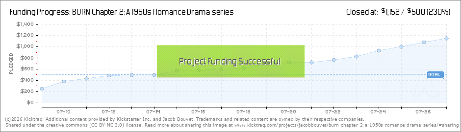 Hello everyone, We are now one week in, we've hit 116% funded and have been selected as a Project We Love by Kickstarter. Thank you all for supporting this project and helping us get to this point. Since it is Tuesday, the new page of BURN is up on... (Read More)