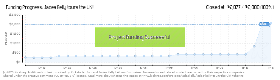 Huge thanks to you all! 'Jadea Kelly' tours the UK is 100% funded, all thanks to you. Stay tuned for updates, postcards and perks. And please follow the tour on my stories and socials xo (Read More)