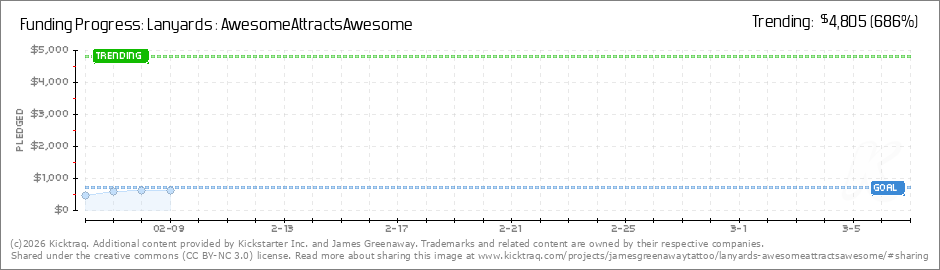 Help your backers reach your daily goals and help others see how you're doing. It's easy, with Kicktraq Mini.Here are a few quick snippits of code you can use to embed your personalized widget on your website, in your blog, and even on your favorite forum.