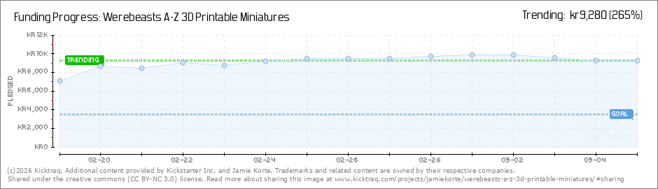 Thanks all for backing my campaign! Off to a great start, looking forward to making more werebeasts for you all. I will begin with polls of suggested animals for me to make next week. So feel free to comment if you have any you want me to include.... (Read More)