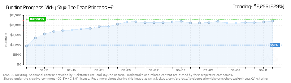 I am very happy to say that backer goal #1 has been unlocked. Thank you all for continuing to get behind the dead princess Vicky Styx #2. We are close to hitting stretch goal #2, and there is time for even more goals to unlock. Don't forget to... (Read More)