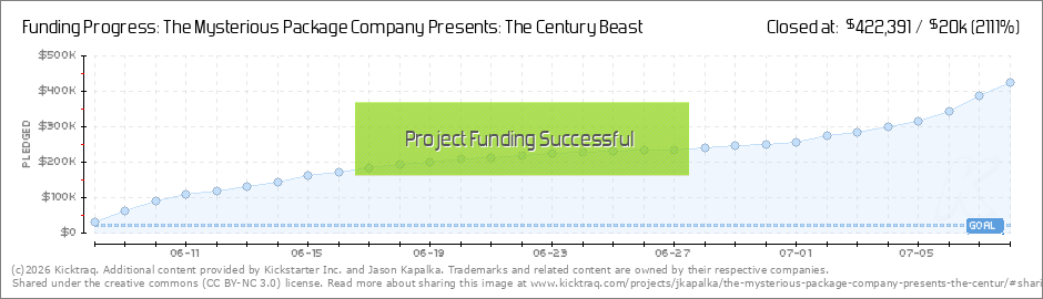 My dearest friends, I am simply flabbergasted by the rapidity with which you have funded us. It took under nine hours to reach our goal, and I thank our backers most deeply for their assistance. We now turn our eyes to ensuring that The Century Beast... (Read More)