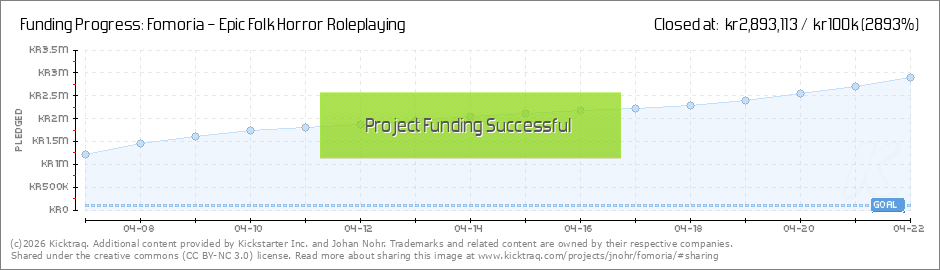 The old stretch goals are already a myth, reached on the first day. But we listened to your prayers to the insidious Darkness, and now we're adding a few more things we hope you like: 2 000 000 SEK: We will add the Wyrd & Ruin contributors'... (Read More)