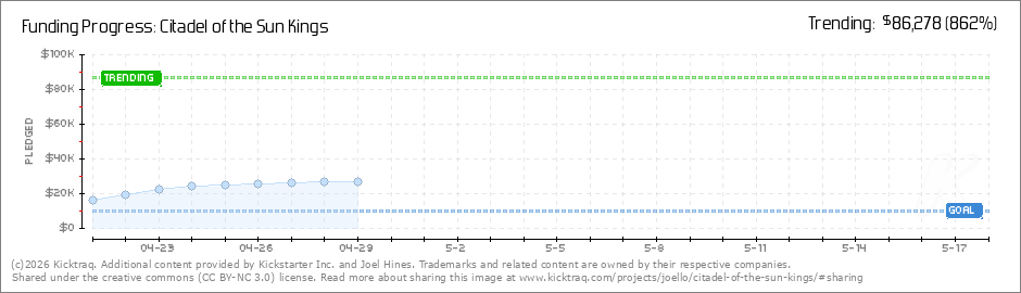 Howdy backers,We're funded! Thanks so much for your support again and getting Citadel of the Sun Kings made within the first couple hours of the Kickstarter. We're looking forward to some more stretch goals in and filling the rewards with even more... (Read More)