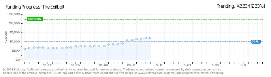 Help your backers reach your daily goals and help others see how you're doing. It's easy, with Kicktraq Mini.Here are a few quick snippits of code you can use to embed your personalized widget on your website, in your blog, and even on your favorite forum.