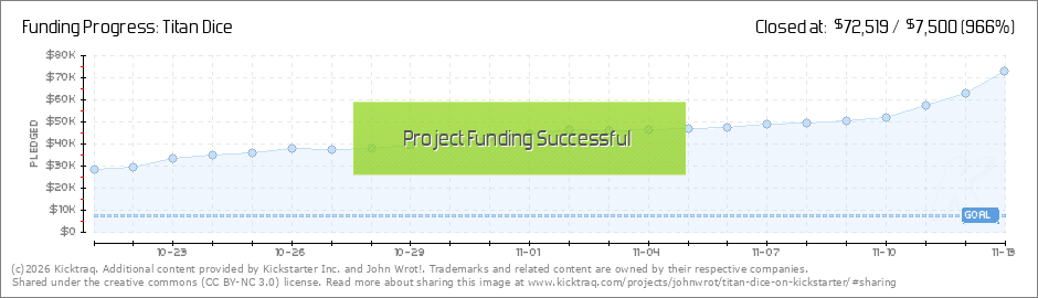 Welcome everyone! Thank you for joining! I have to admit, this was supposed to be my "as soon as we launch, post a 'welcome to Titan Dice'" Update... but it turns out, it's also my "We just Funded in under 8 minutes!!" Update! WOW! AND by the time... (Read More)