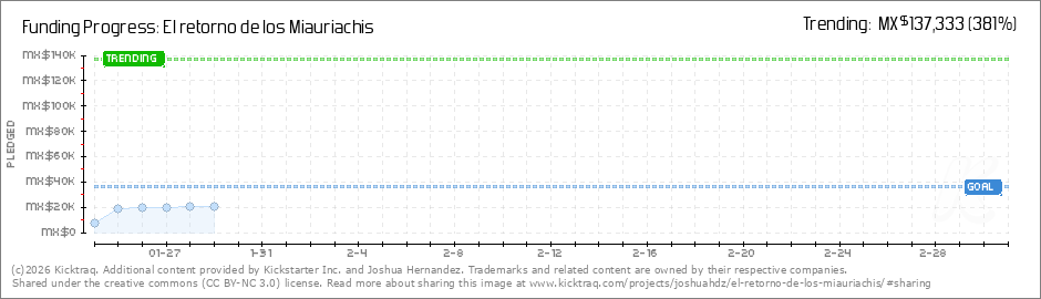 Help your backers reach your daily goals and help others see how you're doing. It's easy, with Kicktraq Mini.Here are a few quick snippits of code you can use to embed your personalized widget on your website, in your blog, and even on your favorite forum.