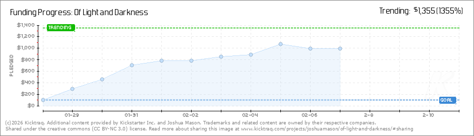 Help your backers reach your daily goals and help others see how you're doing. It's easy, with Kicktraq Mini.Here are a few quick snippits of code you can use to embed your personalized widget on your website, in your blog, and even on your favorite forum.