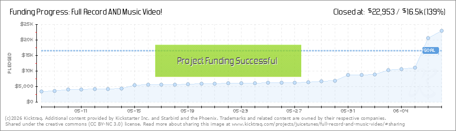 Help your backers reach your daily goals and help others see how you're doing. It's easy, with Kicktraq Mini.Here are a few quick snippits of code you can use to embed your personalized widget on your website, in your blog, and even on your favorite forum.