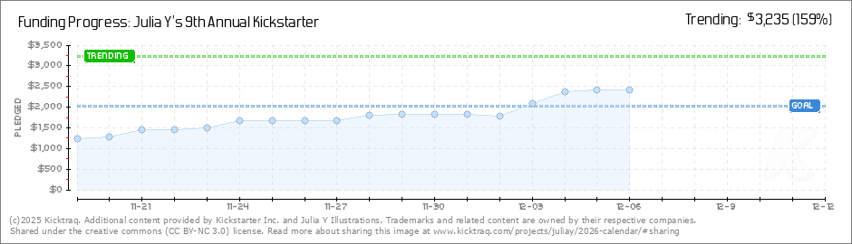 Help your backers reach your daily goals and help others see how you're doing. It's easy, with Kicktraq Mini.Here are a few quick snippits of code you can use to embed your personalized widget on your website, in your blog, and even on your favorite forum.