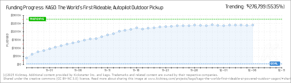 Help your backers reach your daily goals and help others see how you're doing. It's easy, with Kicktraq Mini.Here are a few quick snippits of code you can use to embed your personalized widget on your website, in your blog, and even on your favorite forum.
