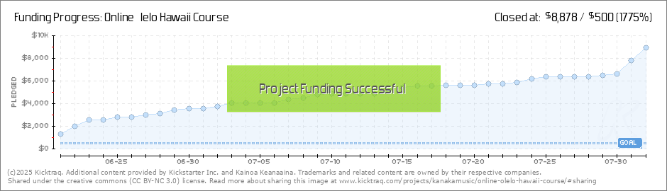 You'll need an HTML5 capable browser to see this content. Play Replay with sound Play with sound 00:00 00:00 Backer count: 62 Amount pledged: $6,368 263% Funded on Day 1 Reach Goal #1 accomplished on July 14th Short ʻŌlelo Hawaiʻi Videos Pōpolo... (Read More)