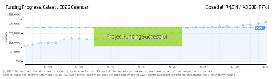 Greetings, The Catastic 2026 Calendar is funded! My gratitude goes out to all the backers who have gotten us to this goal. Even though it's the 10th calendar campaign, it's always a thrill to share my art work here. With seven days remaining, let's... (Read More)
