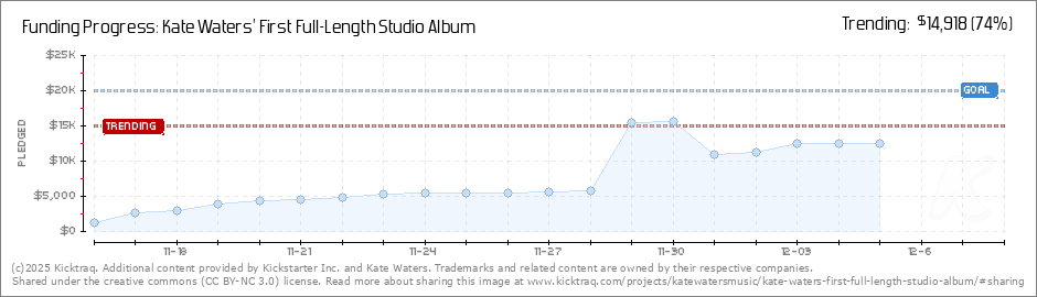 Help your backers reach your daily goals and help others see how you're doing. It's easy, with Kicktraq Mini.Here are a few quick snippits of code you can use to embed your personalized widget on your website, in your blog, and even on your favorite forum.