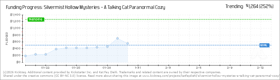 Hey, there; its Kat! OMG, we're almost live. The cat's about to be out of the bag. So now seemed like a good time to encourage you to back early! I'll be running two Early-bird Reward specials (1 digital and 1 print) to give cozy fans an incentive to... (Read More)