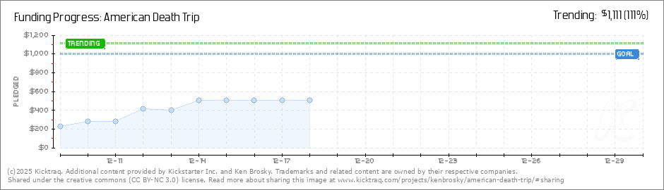 Help your backers reach your daily goals and help others see how you're doing. It's easy, with Kicktraq Mini.Here are a few quick snippits of code you can use to embed your personalized widget on your website, in your blog, and even on your favorite forum.