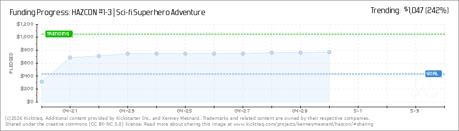 Help your backers reach your daily goals and help others see how you're doing. It's easy, with Kicktraq Mini.Here are a few quick snippits of code you can use to embed your personalized widget on your website, in your blog, and even on your favorite forum.