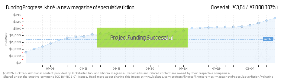 In just over 12 hours from launch, we hit almost 50% of our initial goal -- thank you, thank you, thank you for all of your support from the entire khōréō team. We are grateful from the bottom of our hearts. We're busy reading submissions for... (Read More)