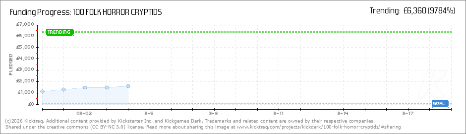 We are funded. Thank you. Because of you, 100 FOLK HORROR CRYPTIDS is coming to life. What began as an idea inspired by stories told around a quiet campfire is now a fully funded project, ready to be brought to tables around the world. One hundred... (Read More)