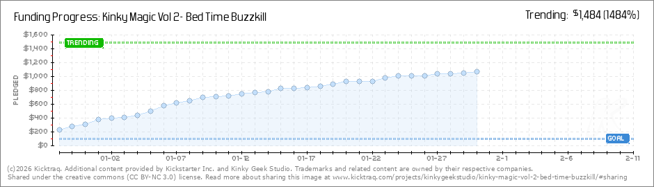 Help your backers reach your daily goals and help others see how you're doing. It's easy, with Kicktraq Mini.Here are a few quick snippits of code you can use to embed your personalized widget on your website, in your blog, and even on your favorite forum.
